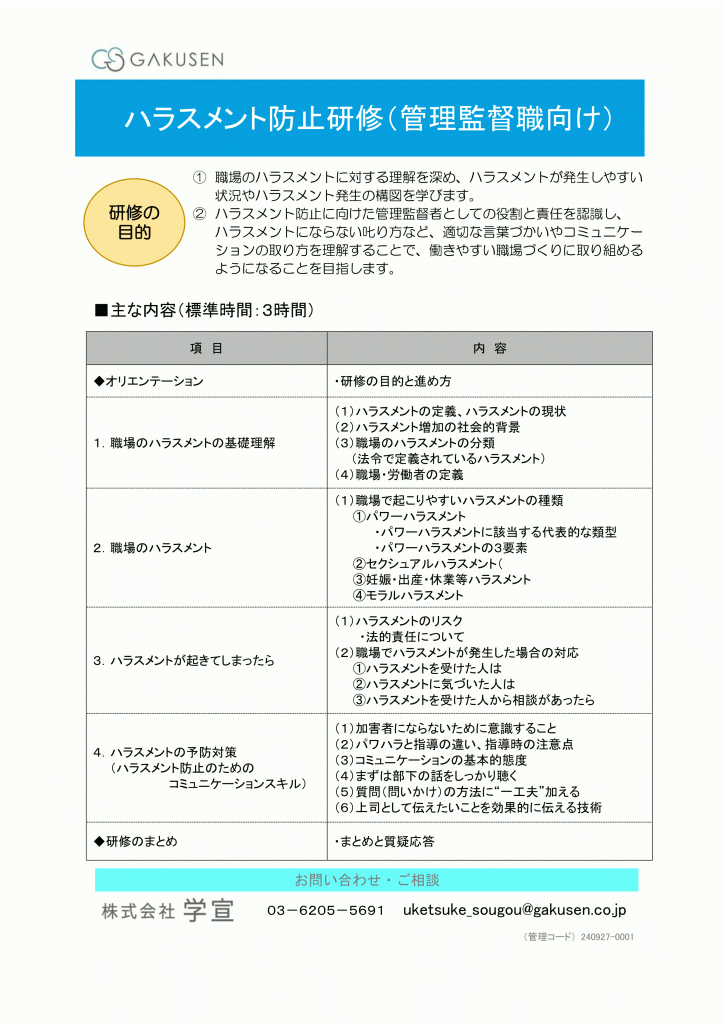 ハラスメント防止研修(管理監督職向け)