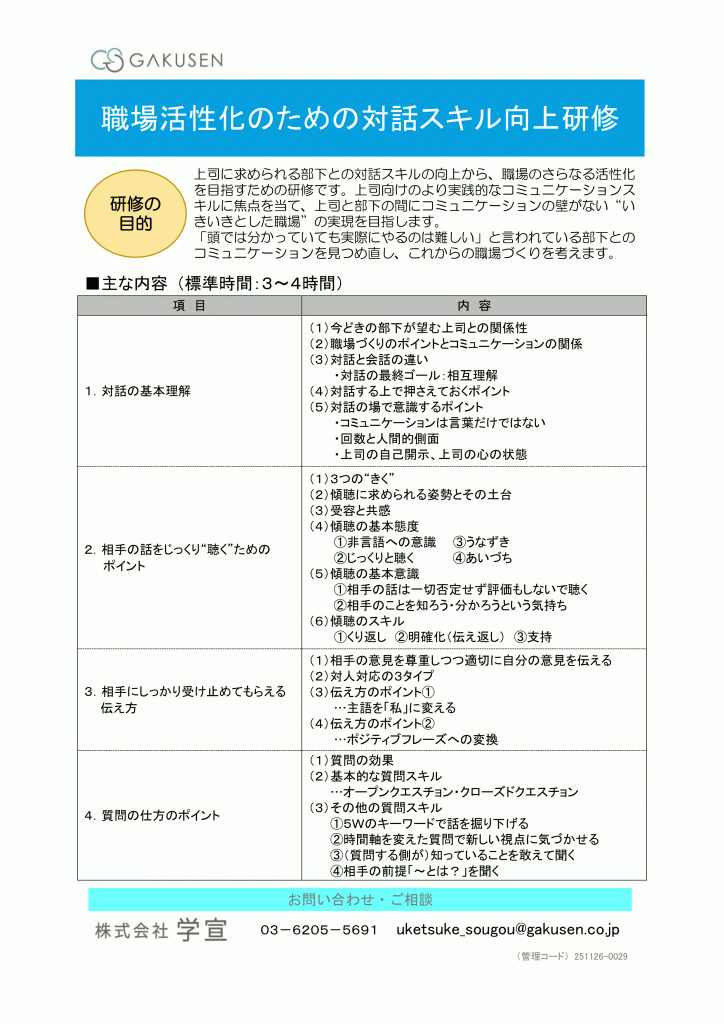 職場活性化のための対話スキル向上研修